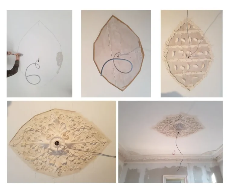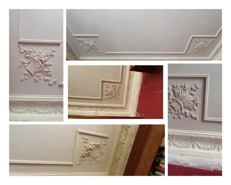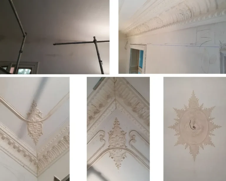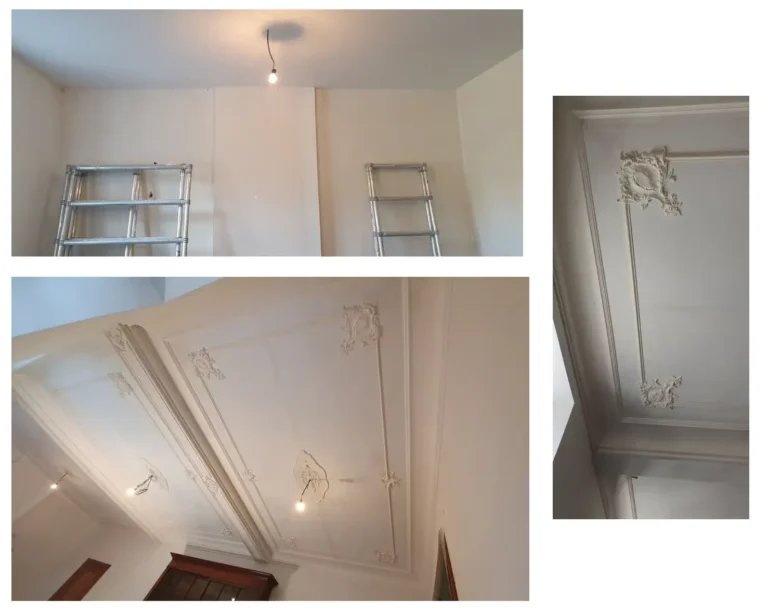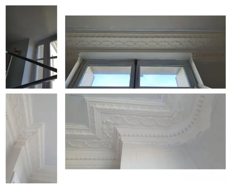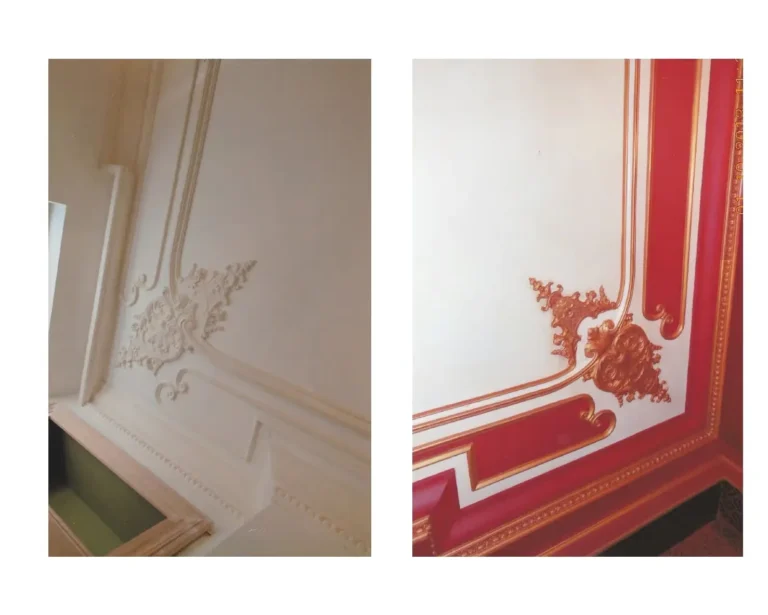 Le staff est anti-feu et le support en plâtre est compatible avec toutes les peintures disponibles sur le marché, y compris les peintures traditionnelles et décoratives : chaux, cire, peintures à l’eau, détrempe, pochoirs, patines, feuilles d’or et autres finitions artistiques. Cette polyvalence permet une liberté créative totale et une intégration parfaite dans tous les styles d’intérieur.