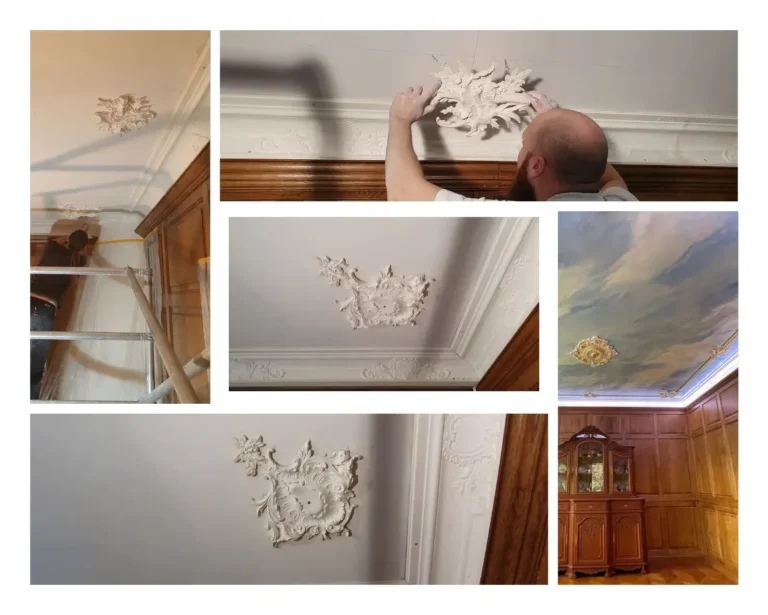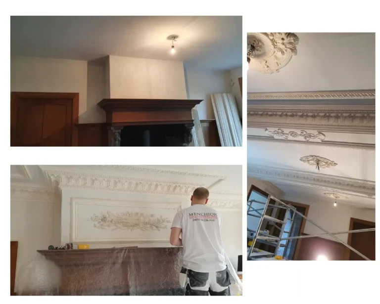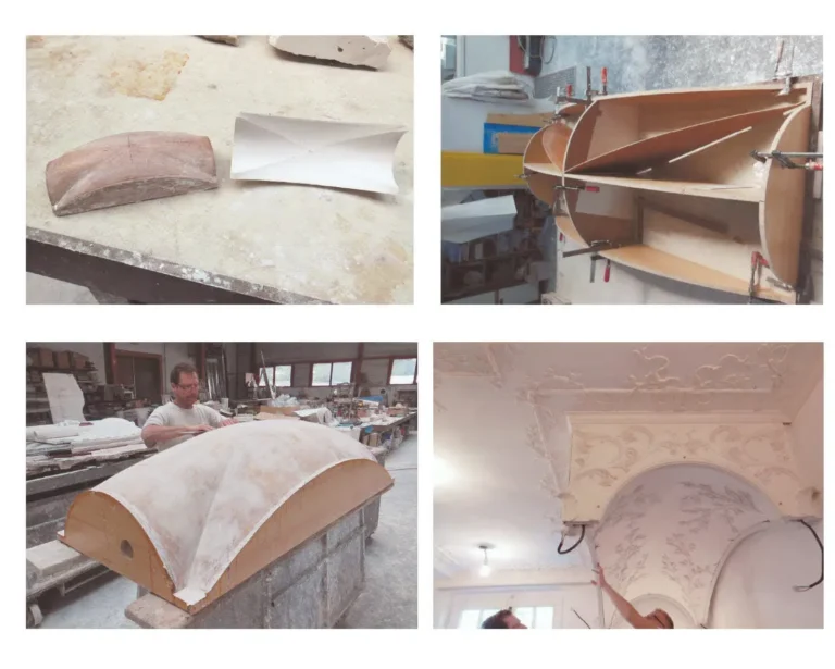 création de moulures et de chapiteaux. - Restaurant « l’Eau Rouge » au Château Peltzer, Verviers,